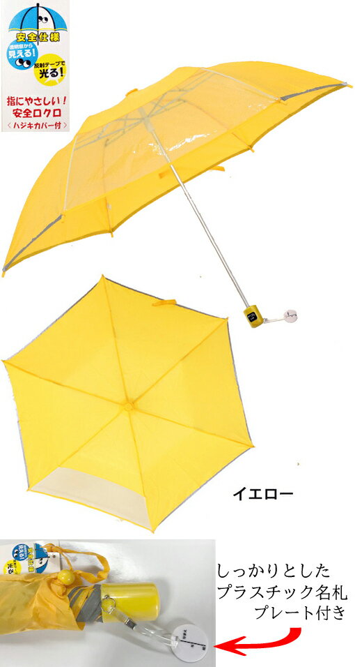男児、女児向けのミニ折傘 暗闇でも光る反射テープ付 透明透明タイプで前が見えて安全。
