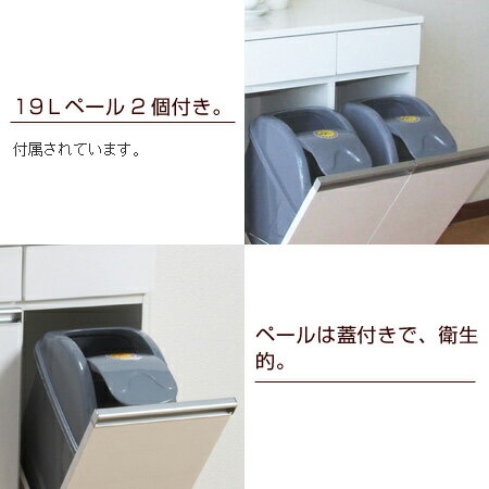 サイズ約 幅55×奥行40×高さ82(cm)引出内寸:(2杯)約 幅20.5×奥行33.5×高さ7(cm)重量:約23kg内容量1台(19Lペール2個付き)材質表面材:(正面)繊維板表面材:(側面)プリント紙化粧合板表面加工:ウレタン樹脂塗装ペール:ポリプロピレンカラーホワイト、ブラウン備考完成品(キャスターのみお客様取付)19Lペール2ヶ付きキャスター4ヶ付き(うちストッパー付き2ヶ)商品区分家庭用分別ゴミ箱カテゴリから探す◆画像をクリックすると拡大して表示されます。